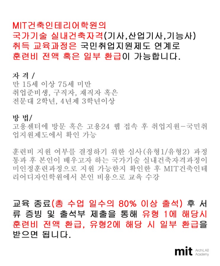 대구 MIT건축인테리어학원 실내건축(기사,산업기사,기능사) 무료교육 안내